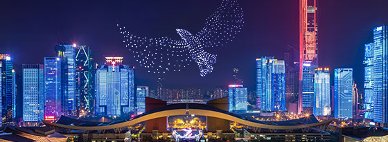 在商业广告、品牌推广、城市形象展示等多个领域都能够看到无人机的表演,这种表演形式已经成为未来艺术界的一道亮丽风景线了。